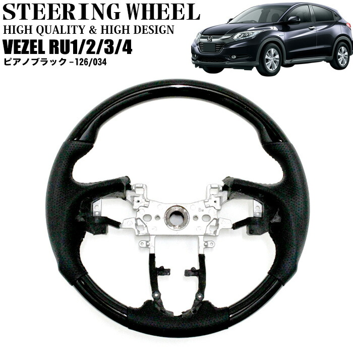 半額即出荷 宅配便 ピアノブラック 本州 四国 九州送料無料 Ru4 レザー ハンドル カスタム パーツ 内装 車用品 純正交換 専用設計 126 グリップ ハイブリッド パンチングレザー Vezel 革 ヴェゼル Ru1 Ru2 Ru3 Ru4 コブ付 パンチングレザー仕様 ガングリップ